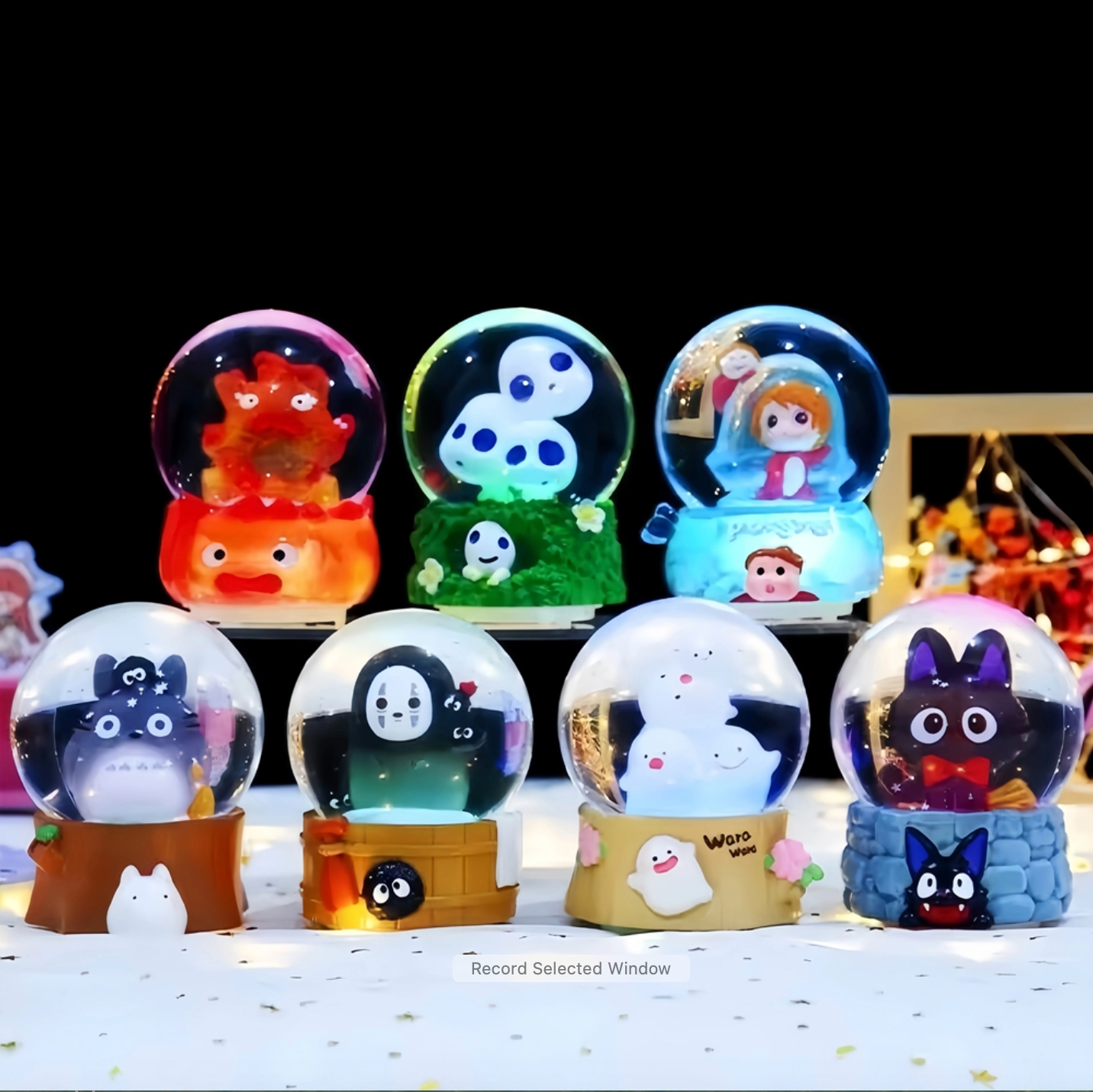 Add a touch of Ghibli magic to your collection with this Set of 6 Blind Box Studio Ghibli Crystal Ball Decor! Each figure features a beloved Studio Ghibli character captured inside a beautifully crafted crystal ball-style display. The miniatures are rich in detail and color, making them perfect for showcasing on your desk, shelf, or workspace.